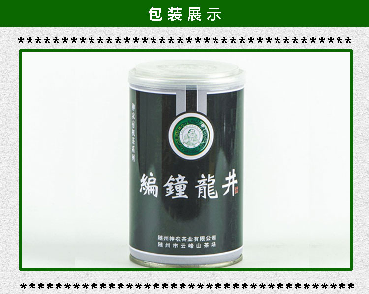 編鐘龍井茶由隨州神農(nóng)茶業(yè)有限公司創(chuàng)制而成。該茶外形扁平挺秀,其色澤綠翠,鮮艷有光,香氣清高鮮爽,滋味甘醇,湯色清冽如玉,素以“色綠、香郁、味甘、形美”四絕著稱,實乃茶之上品。細品其韻味猶如古老而神秘的編鐘音律,故名“編鐘龍井茶"。